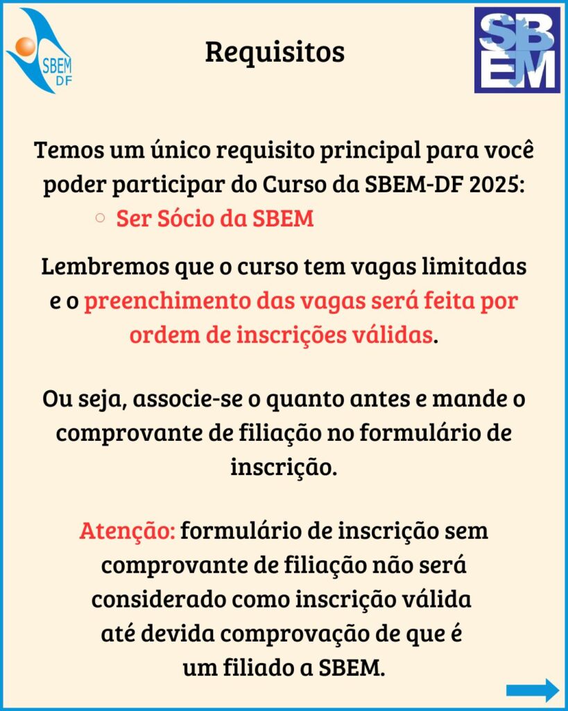 Convidamos todos a participarem do curso, que é gratuito e exclusivo para sócios da SBEM-DF.